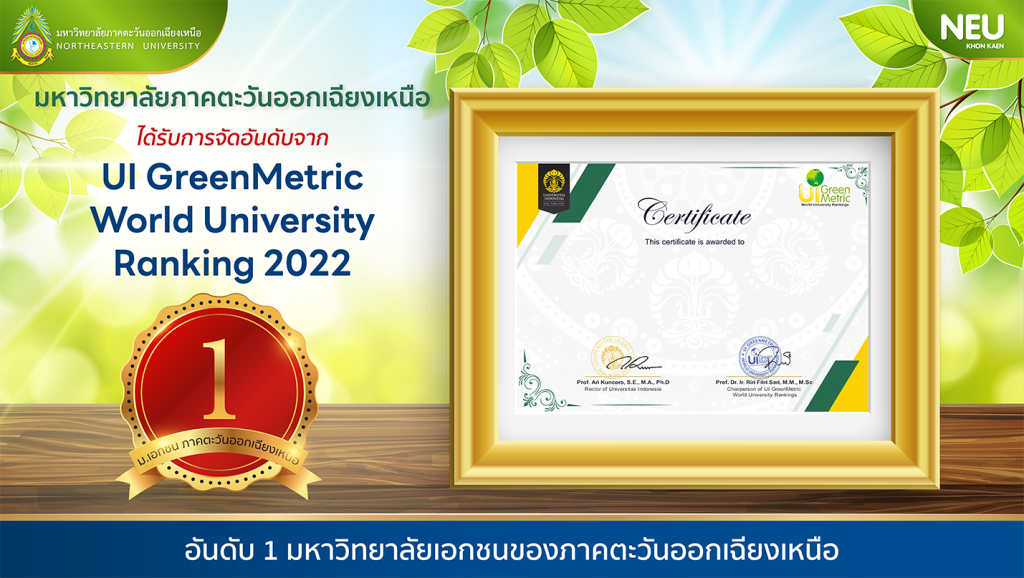 การจัดอันดับ / Rankings มหาวิทยาลัยภาคตะวันออกเฉียงเหนือ ได้การจัดอันดับจาก UI GreenMetric World University Ranking 2022 เกณฑ์การประเมิน - Green University สถานที่และโครงสร้างพื้นฐาน การจัดการน้ำ การจัดการพลังงานและการเปลี่ยนแปลงภูมิอากาศ การจัดการของเสีย การจัดการขนส่ง การศึกษา โครงการ Green University Zero Emission Vehicles (ZEV) Policy on Campusอ่านต่อ »โครงการกิจกรรมลดการใช้กระดาษและพลาสติกของมหาวิทยาลัยอ่านต่อ »IInvite students and the general public “vaccination for ourselves, for everyone”อ่านต่อ »Green University Performance Reportอ่านต่อ » ดูทั้งหมด กิจกรรม ภายใต้โครงการ Zero Emission Vehicles (ZEV) Policy on Campusอ่านต่อ »โครงการกิจกรรมลดการใช้กระดาษและพลาสติกของมหาวิทยาลัยอ่านต่อ »IInvite students and the general public “vaccination for ourselves, for everyone”อ่านต่อ »Green University Performance Reportอ่านต่อ » ดูทั้งหมด รายงานข้อมูลสถิติ